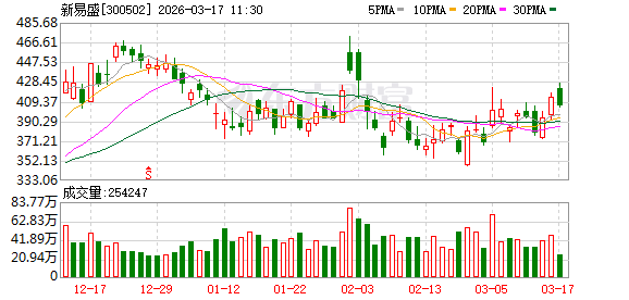 数据宝统计,截至11:10,新易盛成交额101.58亿元,超100亿元。最新股价下跌2.04%,换手率2.78%。上一交易日该股全天成交额为192.06亿元。(数据宝)